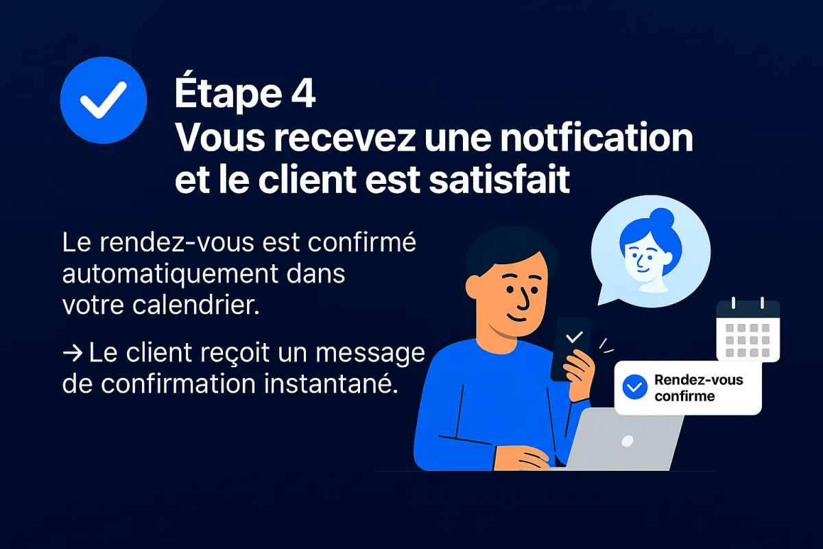 Calendia, c’est un assistant intelligent conçu pour répondre, réserver et gérer vos clients à votre place — 24 h sur 24, 7 jours sur 7.