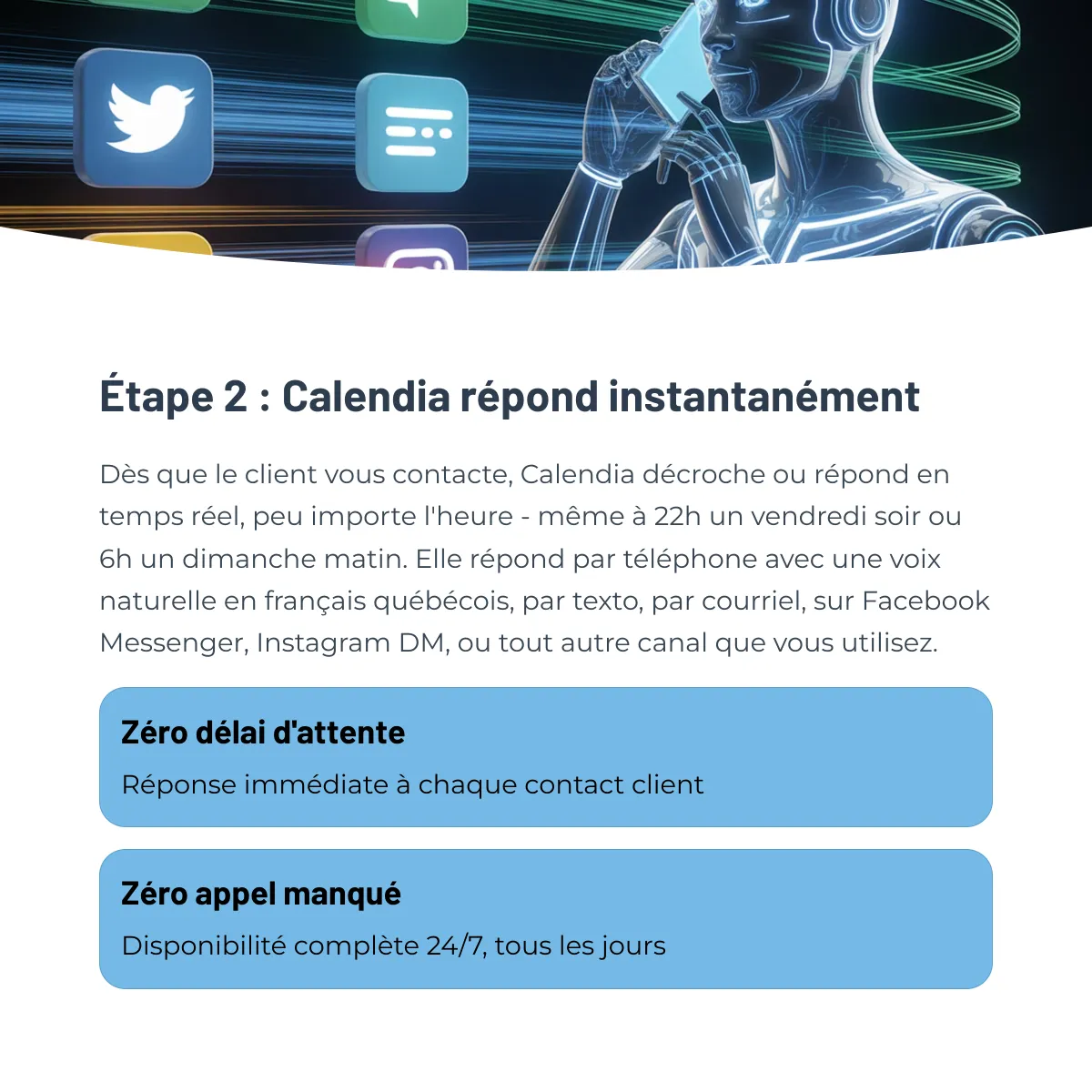 Calendia, lui, ne prend jamais de pause, ne fait pas d’erreurs, et répond 24 h sur 24 — pour un coût beaucoup plus bas.